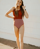 High rise bottoms you will love. Brown with white stripes and REVERSIBLE! Solid brown inside.