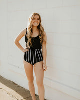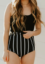 High rise bottoms you will love. Black with white stripes!