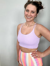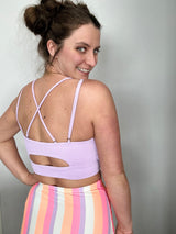 Lavender textured swim TOP with a darling back strap details. You will love this swim top!