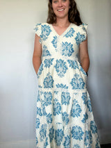 This gorgeous dress is NOW in stock! It will be your new favorite dress on earth. I absolutely love the lace floral details! + pockets!!