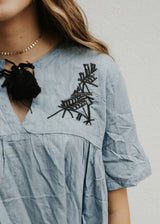 This darling embroidered detail denim dress is NOW in stock! It will be your new favorite dress on earth. Such a cute neckline and so comfortable!