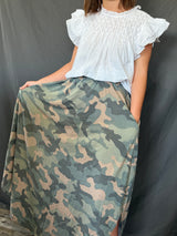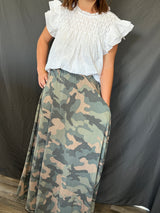 Super darling Camouflage skirt featuring elastic waist!  This skirt is my new favorite! It is incredibly comfortable, and I am loving the camo + it has pockets!!