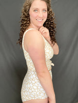 Tan & white floral ribbed knit swim top. You will love this swim top!!