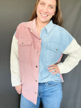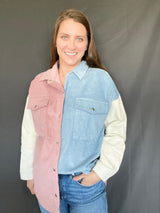 This corduroy color-block jacket is to be a favorite! We are loving the colors and sure it is going to be a favorite!! So soft and warm!