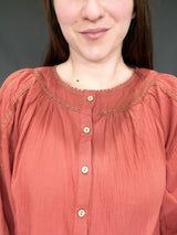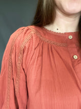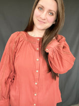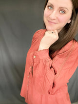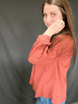 This solid brick color is So darling. This top is every girls idea of absolute eye catching dream. Love! Love!