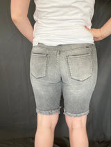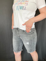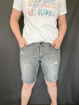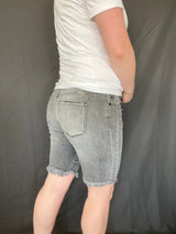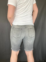 Look no further for the perfect fit! These mid rise distressed bermudas are the perfect fit.